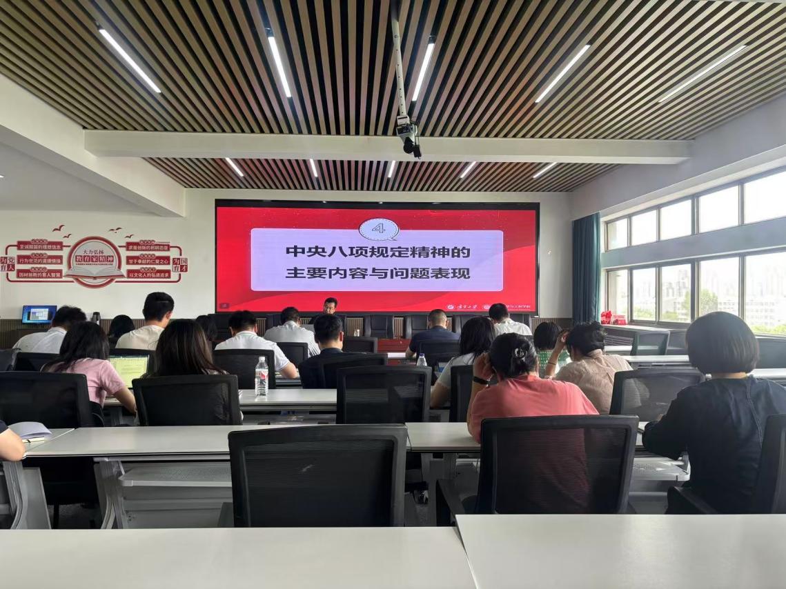 党总支于5月21日下午在明远楼512会议室组织开展学习教育专题党课讲座。讲座以“作风建设常抓不懈再出发——深入贯彻中央八项规定精神”为主题,由学院党总支书记李文华主讲,全体党员教师参加学习。