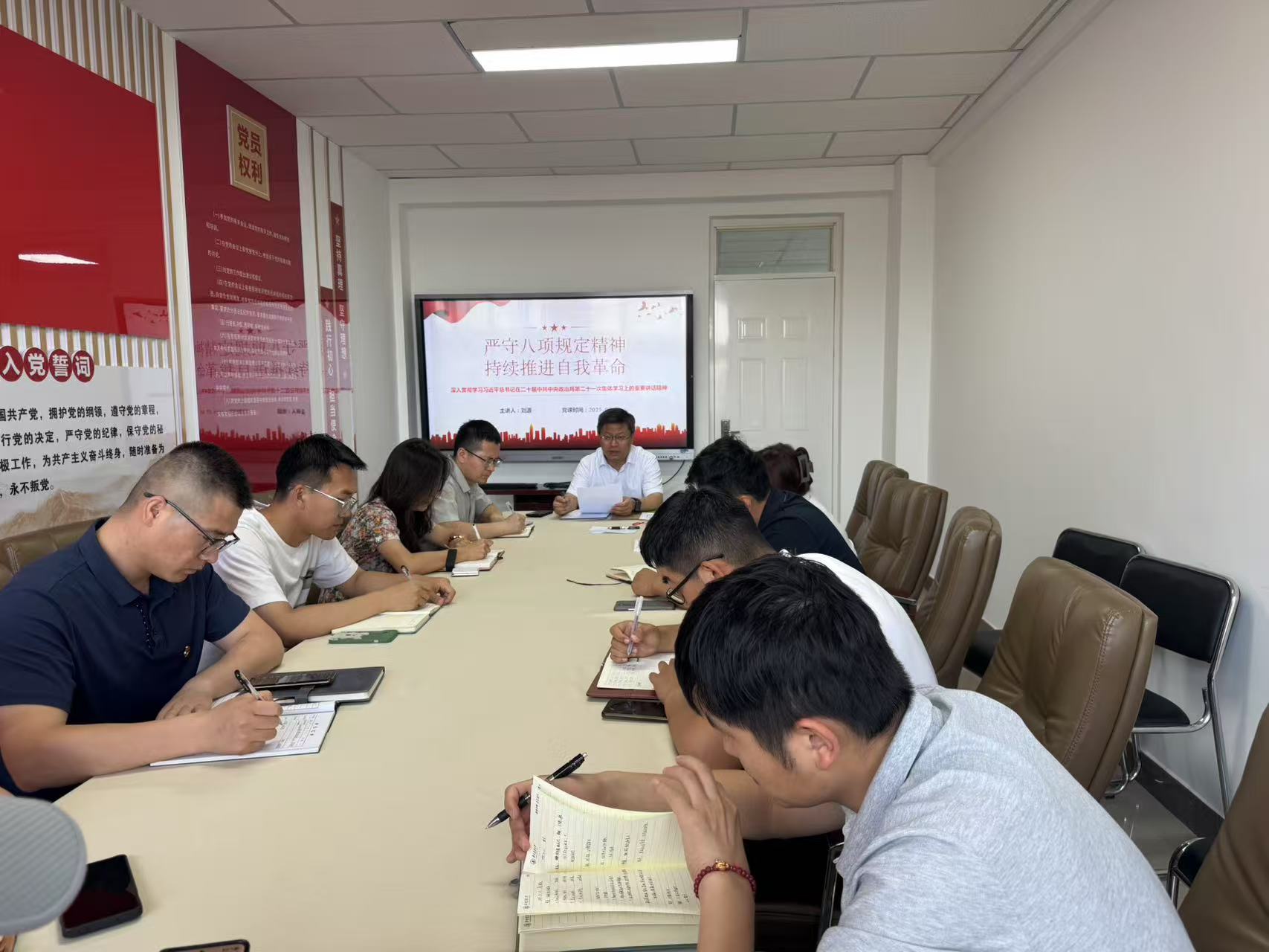 为庆祝中国共产党成立104周年,进一步推动学习贯彻习近平总书记在二十届中共中央政治局第二十一次集体学习时的重要讲话精神,2025年7月7日下午,食品工程党支部组织召开七月份主题党日活动。此次活动以“严守中央八项规定精神 持续推进自我革命”为主题,聚焦理论学习、警示教育与专题党课等多种形式,引导全体党员坚定理想信念、强化使命担当、深化党风廉政建设。支部书记曹松敏同志主持会议。