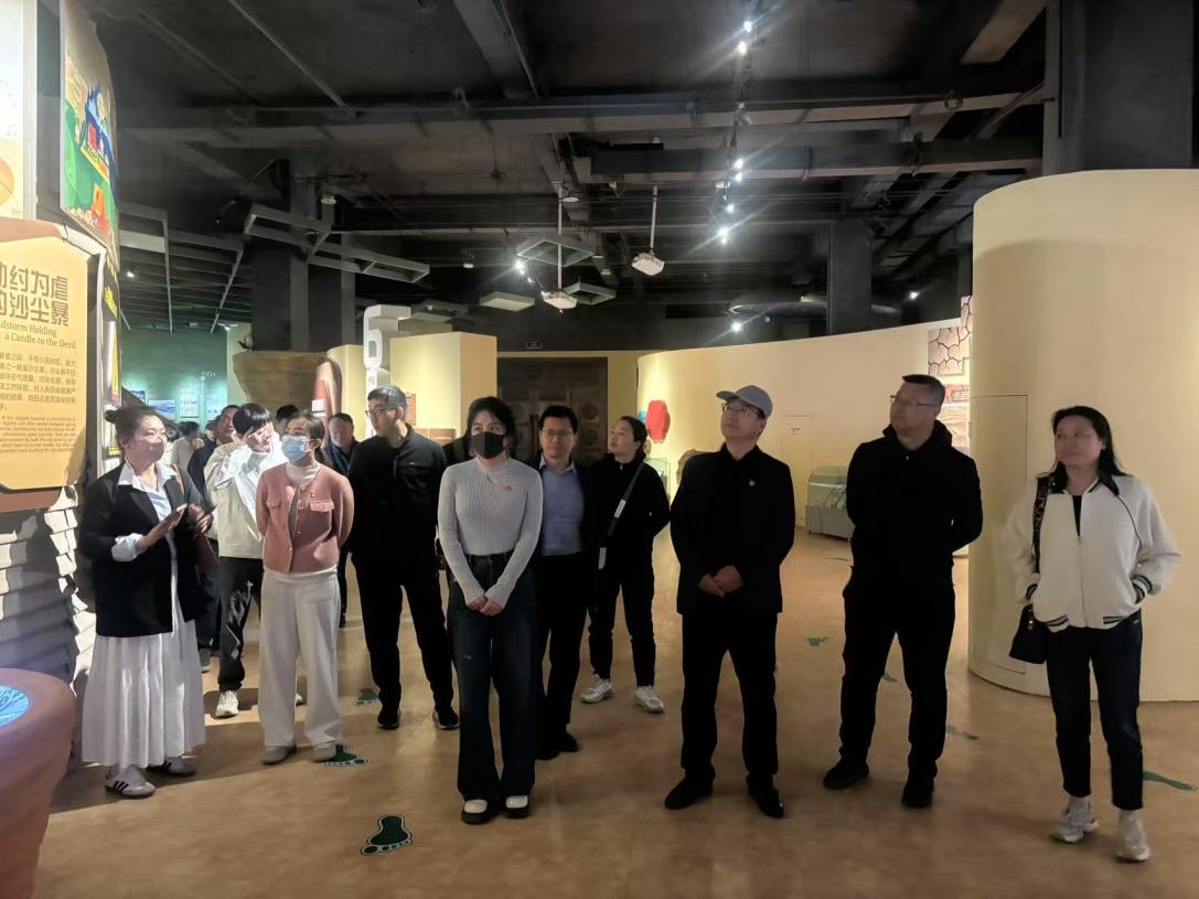 紧接着,教职工们走进全国防沙治沙展览馆。馆内一张张泛黄的照片、一段段珍贵的影像资料,生动地展现了白芨滩人与风沙顽强抗争的历程。在这里,大家深入了解到白芨滩保护区60余年来,三代治沙人累计治沙造林63万亩,有效遏制毛乌素沙地南移西扩,守护黄河流域生态安全的伟大功绩。