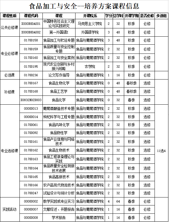 设立食品加工与安全领域专业硕士授权点。经过长期建设,现有成员30人,博士占比56.7%,正高级职称占比30%,研究生导师50%。为国家教育部特色专业、宁夏回族自治区级重点专业及优势特色学科。