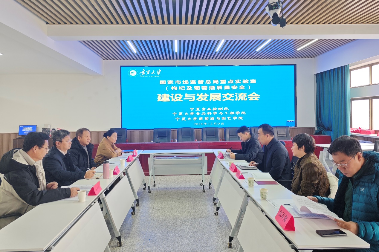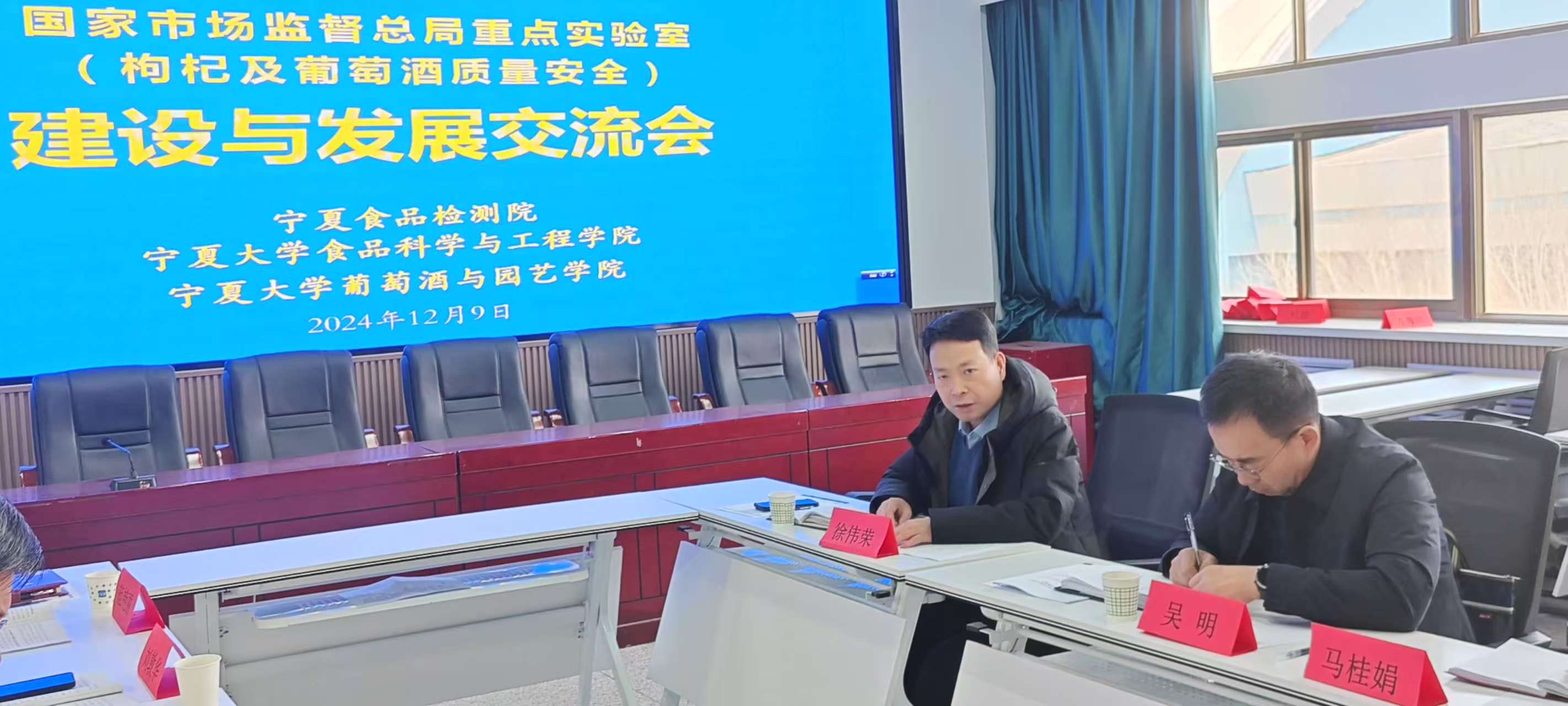 12月9日,宁夏回族自治区食品检测研究院院长吴明、副院长马桂娟一行莅临萝莉社 ,共商国家市场监督管理总局重点实验室(枸杞及葡萄酒质量安全)建设发展,助力宁夏特色食品产业高质量发展。
