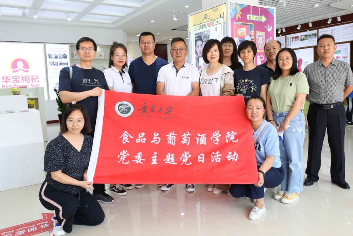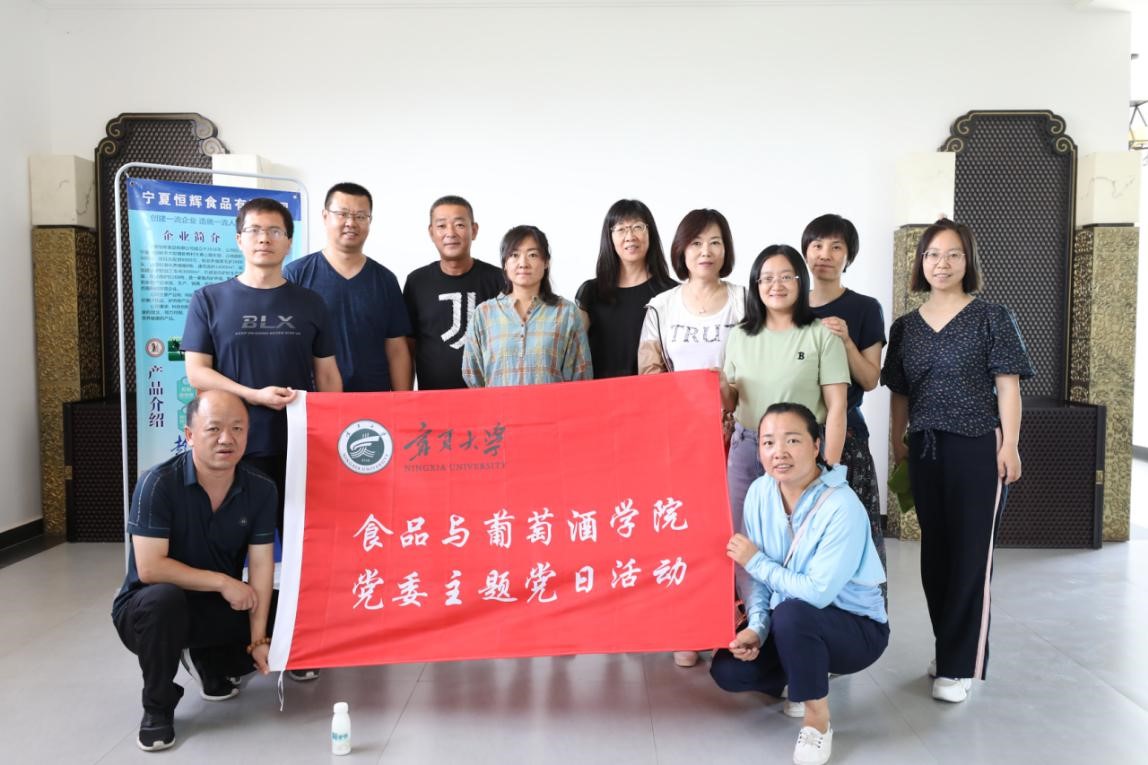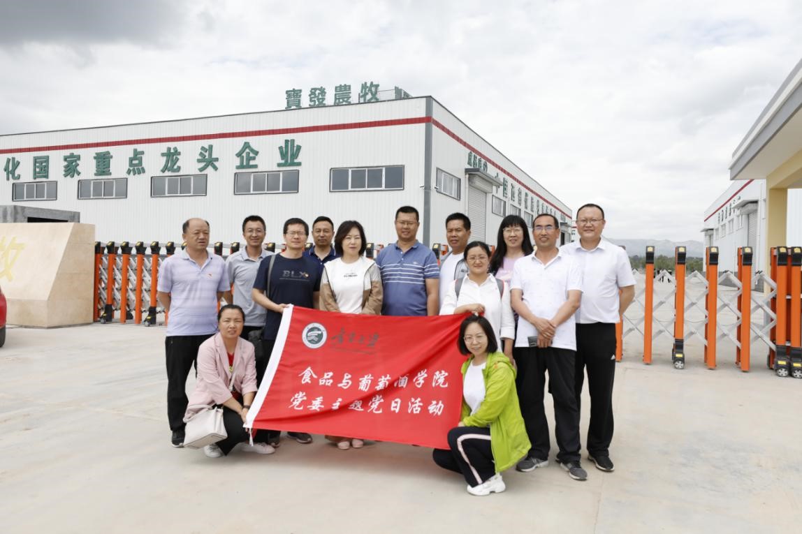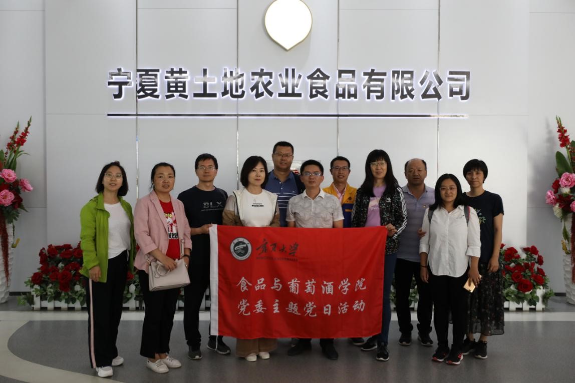 食品与葡萄酒学院党委于2020年7月28日至31日远赴中卫、同心、固原多地,深入宁夏中宁枸杞产业创新研究院、宁夏华宝枸杞产业有限公司、宁夏红枸杞产业有限公司、宁夏五谷丰生物科技发展有限公司、宁夏黄土地农业食品有限公司、宁夏尚农生物科技发展有限公司、宁夏兴宇绿色粗粮加工有限公司等18家食品企业开展科技服务与调研活动,详细考察枸杞原浆及生物发酵制品、冷榨胡麻油、牛肉精深加工、纯粮五谷香醋等数十个食品生产车间,支部党员用专业知识现场为企业解决生产技术难题,并就企业发展现状和产品存在问题进行面对面交流,以实际行动践行“不忘初心,牢记使命”的党性宗旨,深入企业协同促进产学研发展。