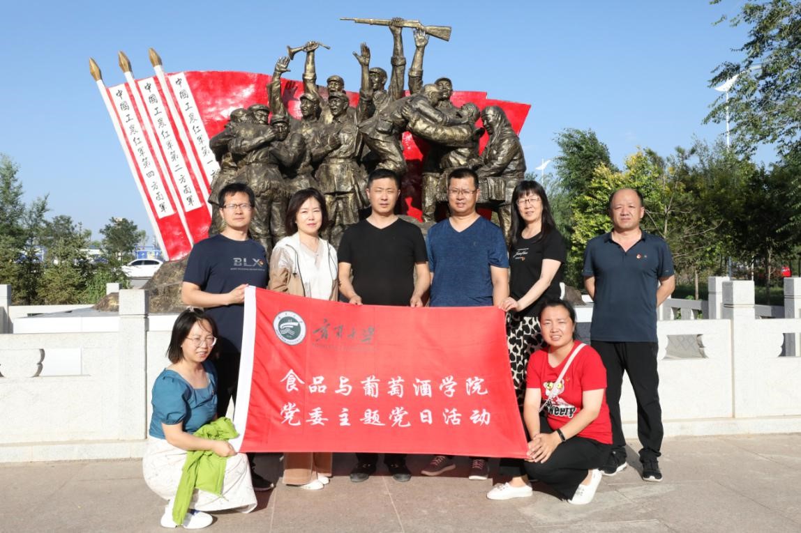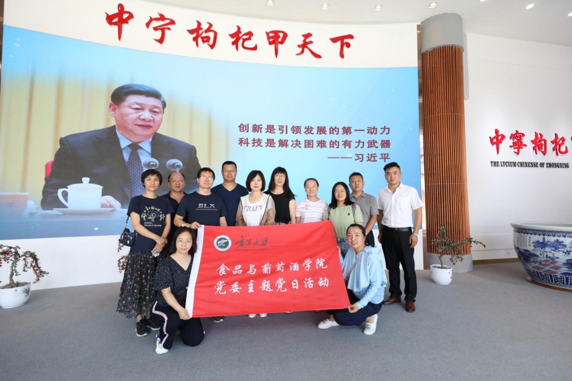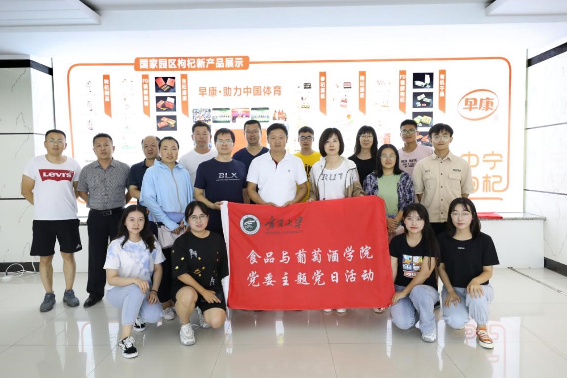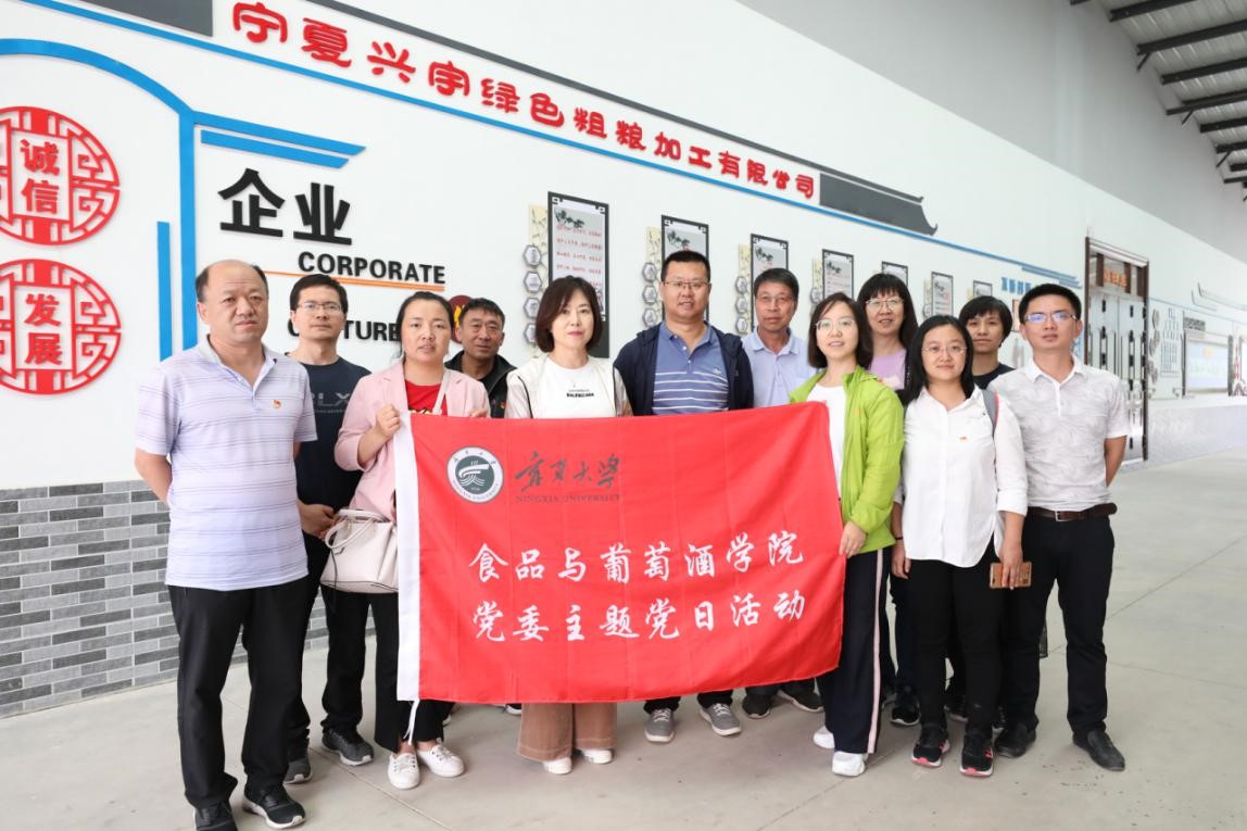 食品与葡萄酒学院党委于2020年7月28日至31日远赴中卫、同心、固原多地,深入宁夏中宁枸杞产业创新研究院、宁夏华宝枸杞产业有限公司、宁夏红枸杞产业有限公司、宁夏五谷丰生物科技发展有限公司、宁夏黄土地农业食品有限公司、宁夏尚农生物科技发展有限公司、宁夏兴宇绿色粗粮加工有限公司等18家食品企业开展科技服务与调研活动,详细考察枸杞原浆及生物发酵制品、冷榨胡麻油、牛肉精深加工、纯粮五谷香醋等数十个食品生产车间,支部党员用专业知识现场为企业解决生产技术难题,并就企业发展现状和产品存在问题进行面对面交流,以实际行动践行“不忘初心,牢记使命”的党性宗旨,深入企业协同促进产学研发展。