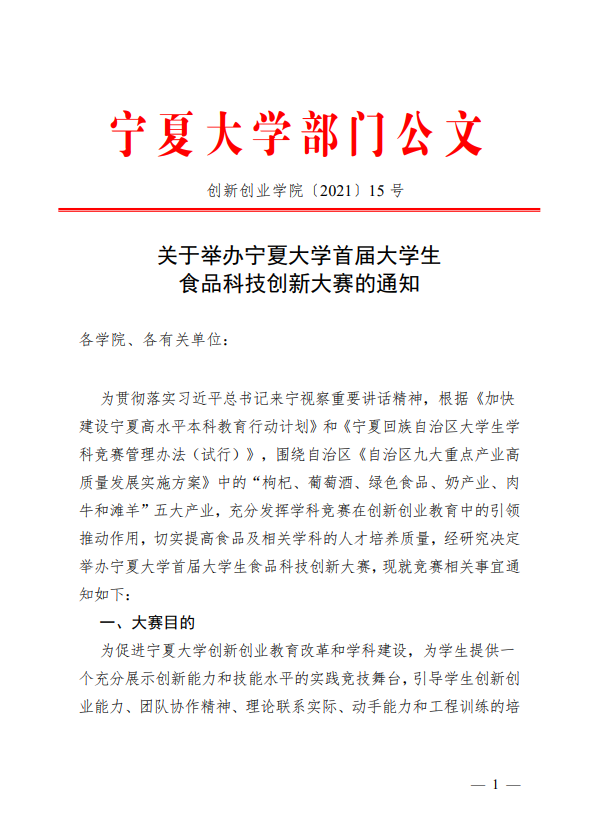 关于举办萝莉社 首届大学生食品科技创新大赛的通知