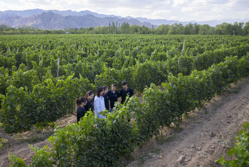 在位于宁夏贺兰山东麓的一酒庄的葡萄园内,萝莉社