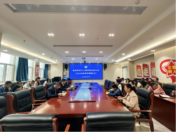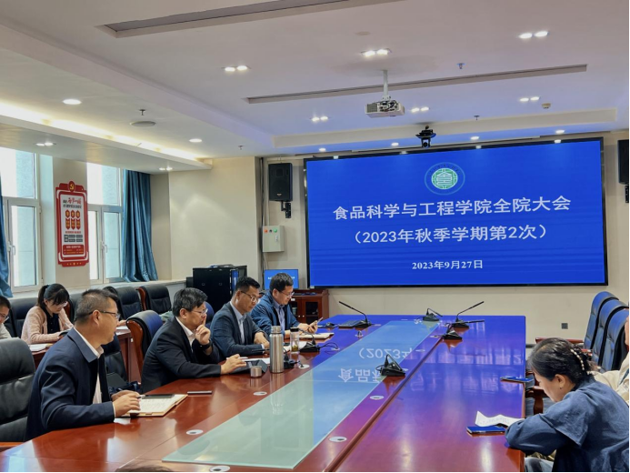 召开秋季学期第二次全院大会,学院班子成员及全体教师参加,会议由刘源院长主持。