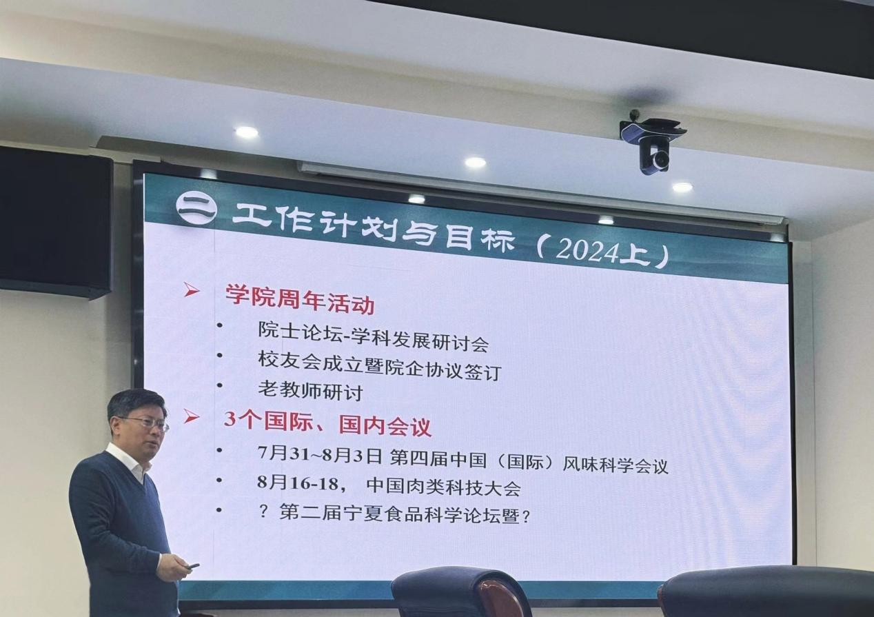 刘源就本学期学院行政工作、学科建设与科研重点任务作了安排部署,对学院制度建设、组织架构、治理体系、人才培养、整体搬迁与基础工作等方面的总体规划谈了工作思路,并表示要结合学院周年庆典活动的开展,举办宁夏食品学会年会、食品学科发展研讨会、西部地区食品学科青年学者论坛、第一届中国(国际)风味科学论坛等,成立萝莉社