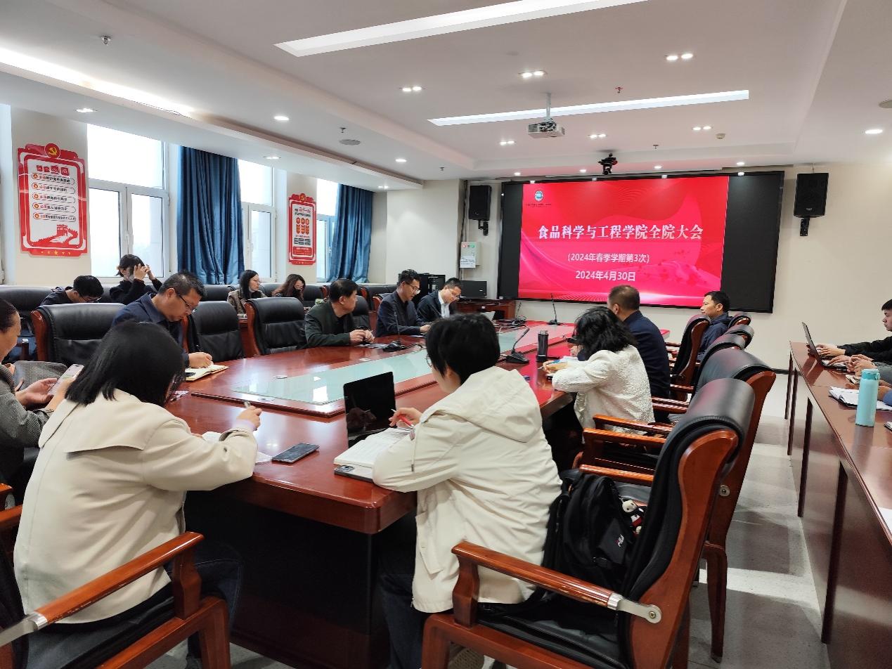 2024年春季学期第3次全院大会在科技楼A410会议室召开,会议由李文华副书记主持,学院全体教师参加。