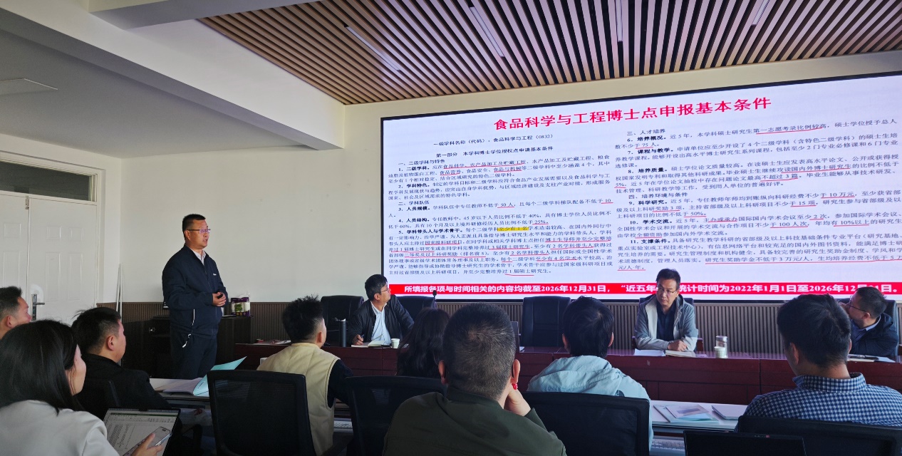方海田副院长着重从学位点与研究生工作以及实验室工作等方面,对硕士生招生、博士点申报基本条件、实验室改造维修及搬迁、大型仪器共享、实验室安全等工作进行了汇报。