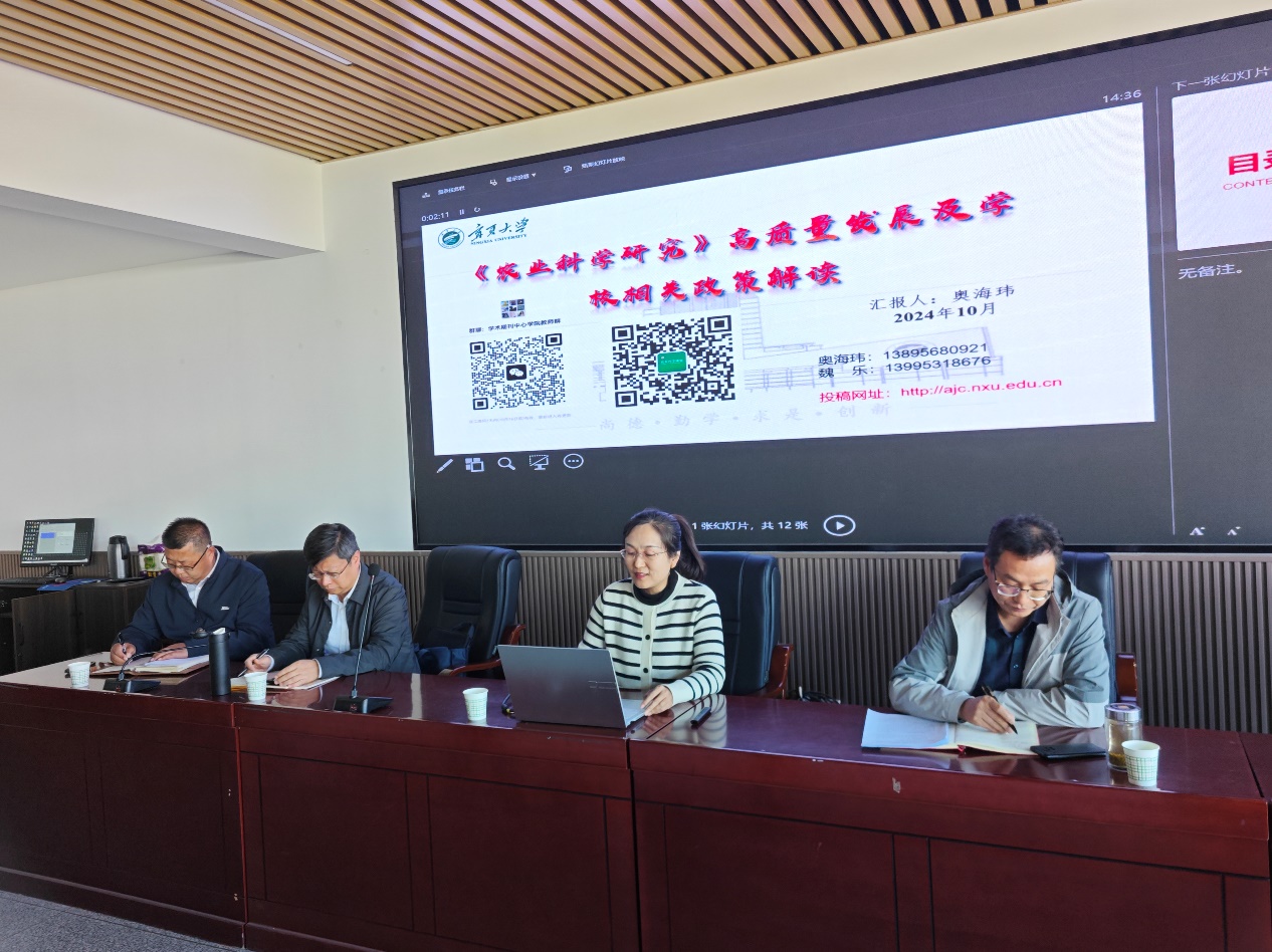 大会伊始,学校学术期刊中心奥海炜主任对《农业科学研究》高质量发展及学校相关政策进行解读。奥主任详细介绍了学术期刊中心的发展历史及改革情况,并深入讲解了《农业科学研究》的建设情况,让学院教师对该学术期刊有了更深入的了解。同时,奥主任还对学校相关激励政策进行了细致的剖析,为教师们在学术研究道路上提供了有力的政策支持与引导。